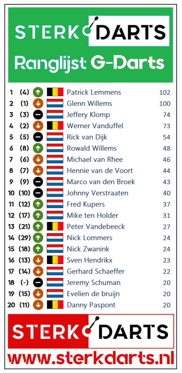 Voorafgaand aan ieder singeltoernooi wordt er een Gouden Finish (131-170) bekend gemaakt. Wordt de Gouden Finish gegooid dan wint die speler de Jackpot. Wordt de Gouden Finish niet gegooid? Dan blijft de Jackpot staan én wordt de Jackpot verhoogd!